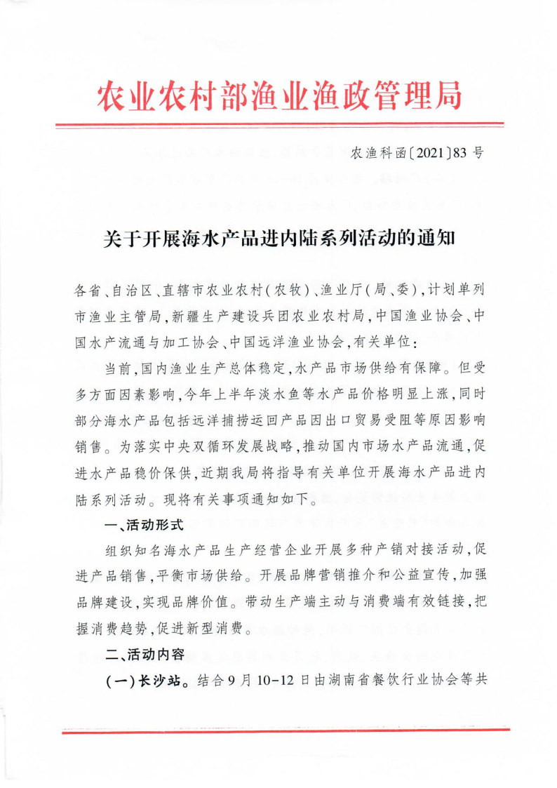 農(nóng)業(yè)農(nóng)村部漁業(yè)漁政管理局指導(dǎo)海水產(chǎn)品進內(nèi)陸系列活動即將拉開帷幕
